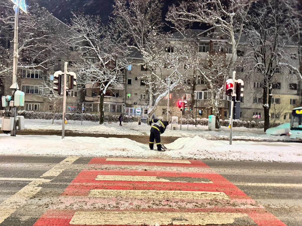 Toate utilajele sunt în teren și acționează continuu pentru degajarea zăpezii și împrăștierea materialului antiderapant, astfel încât circulația să se desfășoare în condiții de siguranță. De asemenea, voluntarii SVSU au fost mobilizați pentru intervenții în zonele trecerilor de pietoni și a unităților de învățământ, pentru asigurarea accesului pietonal.