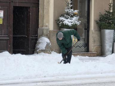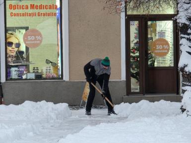 - Luaţi exemplul prefectului! Nu aşteptaţi să vină alţii să vă cureţe zăpada! A ieşit cu lopata în faţa casei şi a făcut curat! S-a bucurat şi de o companie deosebită!