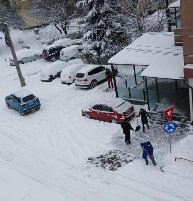 Astăzi, sute de bistrițeni s-au înarmat cu lopata și au dat zăpada la o parte, contribuind direct la siguranța pietonilor și la buna desfășurare a circulației în oraș.