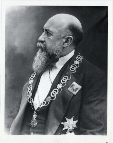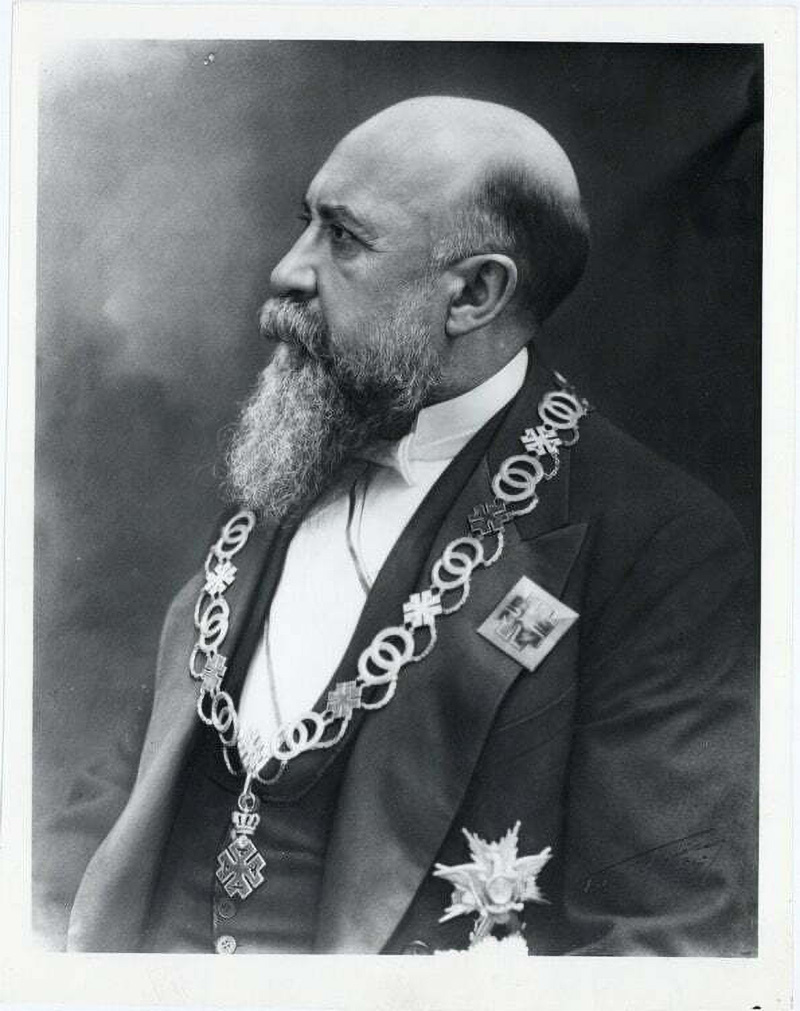 Nicolae Iorga în frac și cu Marele Colan al Ordinului Ferdinand, 1931