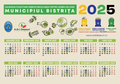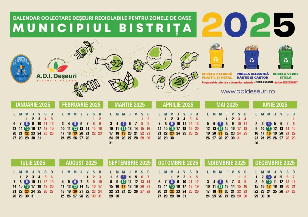Vezi programul de colectare a deșeurilor reciclabile în municipiul Bistrița și localitățile componente pentru luna NOIEMBRIE 2025: