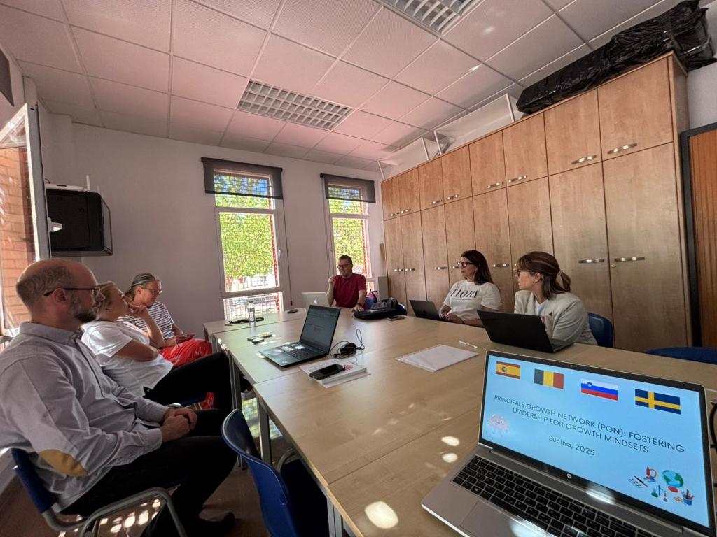 Întâlnirea transnațională a proiectului a avut loc pe parcursul a trei zile la Sucina, Murcia, adunând parteneri din Spania, Slovenia, Suedia și România pentru a lansa oficial proiectul. Prima zi a început cu o primire călduroasă și prezentări ale ‚colilor partenere, urmate de o revizuire comună a obiectivelor proiectului, așa cum sunt stabilite în cererea aprobată Erasmus+. Partenerii au reflectat asupra semnificației și obiectivelor proiectului și s-au angajat într-o sesiune de planificare strategică a acțiunilor specifice care vor fi dezvoltate împreună. Un rezultat cheie al proiectului este construirea unei rețele europene de lideri de școală care să promoveze o mentalitate de creștere și un leadership colaborativ în diferite contexte. În această sesiune, s-a convenit, de asemenea, ca fiecare țară să conducă o componentă specifică a proiectului. Echipa a început să exploreze idei pentru identitatea vizuală și logo-ul proiectului. După-amiaza, participanții au luat parte la o activitate experiențială de navigație la Școala de navigație Socaire, care a evidențiat valorile muncii în echipă, provocării și învățării reflexive – strâns legate de filozofia educațională care stă la baza proiectului.
