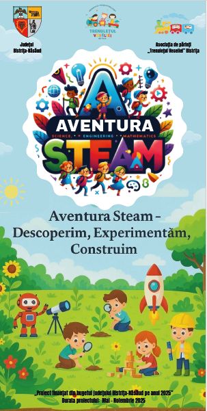 Grădinița cu Program Prelungit „Trenulețul Veseliei” Bistrița, prin Asociația de părinți „Trenulețul Veseliei”, derulează proiectul „AVENTURA STEAM – DESCOPERIM, EXPERIMENTĂM, CONSTRUIM”, proiect cu finanțare nerambursabilă din bugetul județului Bistrița-Năsăud pe anul 2025, în baza Legii nr.350/2005.