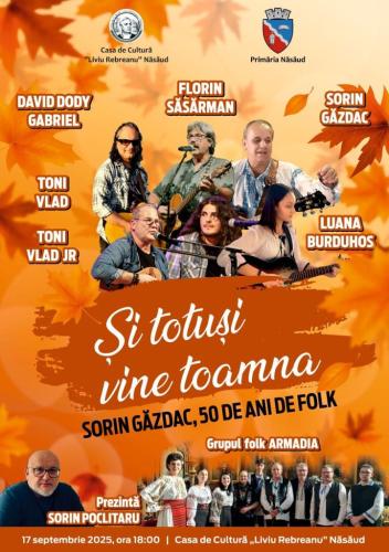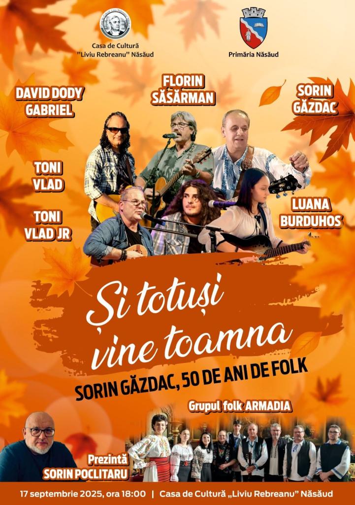 Haideți să ne bucurăm împreună de acest regal muzical, de o seară de suflet, la început de toamnă și să îl felicităm pe domnul Sorin Găzdac pentru întreaga carieră în domeniul folkului!