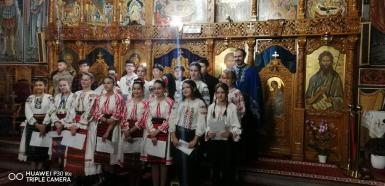 La Biserica Ortodoxă ”Sfinții Apostoli Petru, Pavel și Andrei” a început, vineri după-masă, seria de manifestări, de slavă Sfintei Treimi și Fecioarei Maria, care se vor întinde pe tot parcursul Postului, perioadă premergătoare Nașterii Domnului nostru Iisus Hristos. După încheierea Vecerniei, preotul paroh dr. Bogdan Oprea a anunțat momentul următor, pregătit de tinerii invitați în fața credincioșilor, numeroși ca întotdeauna, pentru salba de cântece religioase. Frumoși, cu vocile lor tinere, și îmbrăcați în minunate costume populare, tinerii credincioși au adus slavă Sfintei Fecioare Maria, Maica Domnului și a noastră a tuturor, cinstind sărbătoarea ”Intrarea Maicii Domnului în Biserică”, marcând, rămânerea în slujbă, la Templu, a fetiței Miriam, după numele evreiesc, unde s-a desăvârșit duhovnicește pentru aducerea pe lume a Fiului Dumnezeiesc, întru izbăvirea lumii de păcatul morții sub care au căzut Adam și Eva, protopărinții noștri. În continuare, credincioșii au putut asculta mai multe colinde din tezaurul tradițional românesc, impresionante prin sensibilitate și prin mesajul, imprimate de tinerii interpreți. La fiecare colindă au fost răsplătiți cu aplauze de cei prezenți.