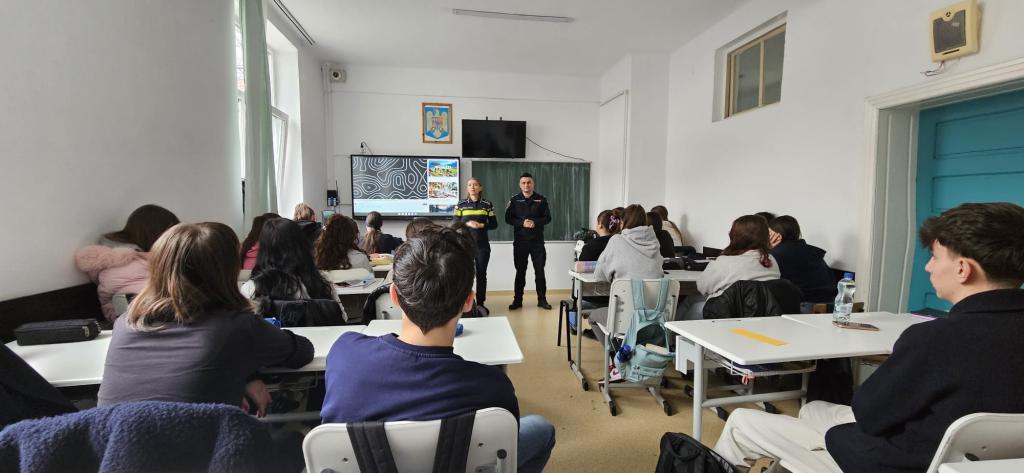Împreună cu elevii clasei a X-a B, au fost dezbătute și discutate următoarele teme: bullyingul și urmările lui, răspunderea contravențională; violența și urmările ei, răspundere penală pentru vătămare gravă, punere în pericol; furtul din magazine; infracțiunea de tulburare a ordinii și liniștii publice – consecințe; infracțiuni comise în mediul on-line, fapte care aduc atingere imaginii unei persoane; pentru amenințări grave, de orice fel, se informează poliția printr-o plângere scrisă.