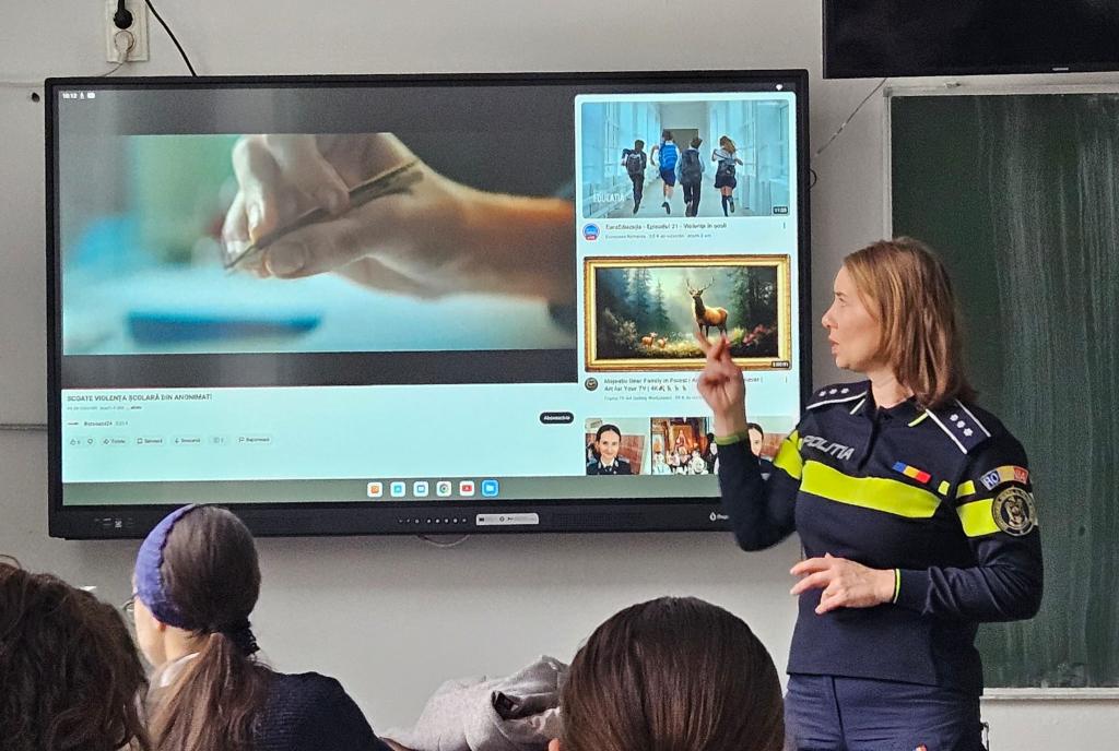 La Liceul Teoretic Sanitar, Bistrița, în data de 4 februarie 2026, d-na Inspector Cozma Lenuța, de la IPJ BN, compartimentul Birou de Siguranță Școlară, și d-nul căpitan Runcan Alexandru de la IJJ BN, la invitația doamnei profesor Vultur Laura-Mariana, consilier educativ, au desfășurat o activitate preventiv-educativă, inclusă în cadrul zilelor dedicate Nonviolenței în școală (30 ianuarie-5 februarie 2026).