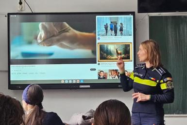 S-a explicat infracțiunea de violare a vieții private: înregistrarea unei persoane audio-video fără acordul acesteia; forma agravantă este atunci când sunt răspândite imagini din intimitate; aceste fapte duc la dosar penal și daune morale. Elevilor li s-a adus la cunoștință că mulți infractori acționează în mediul online; sunt „prădători” care cer, prin diverse metode de constrângere, fotografii sau filmulețe indecente din diferite medii, chiar și din școală sau realizate în toaleta școlii. Se recomandă: a nu trimite nimănui poze nud sau din intimitate; acestea pot ajunge obiect de șantaj sau pe diferite site-uri dubioase sau diverse rețele on-line unde nu mai există control, iar de la violarea imaginii în spațiul online se ajunge foarte ușor la pornografie infantilă.