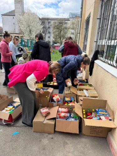 * Pachete cu alimente, destinate familiilor monoparentale din Bistrița și unui centru de bătrâni din Viișoara