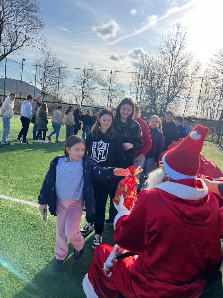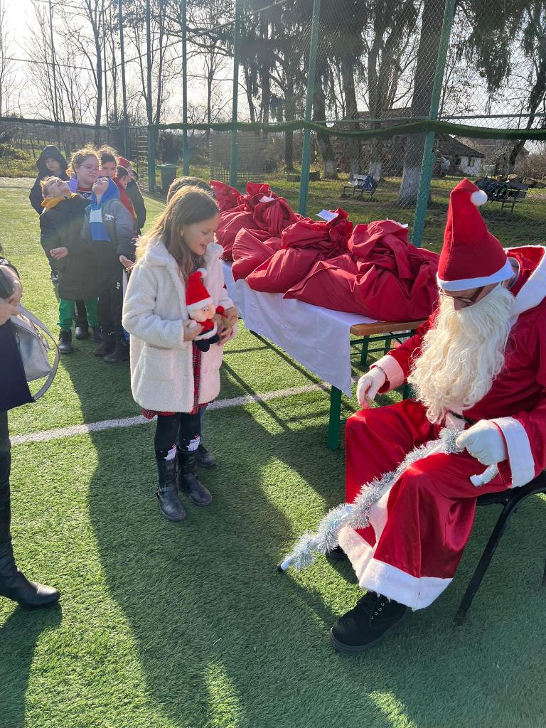 Știind că vine Moșul, copiii s-au adunat în curtea școlii plini de nerăbdare, cu chipuri vesele și ochi plini de curiozitate. L-au întâmpinat cu colinde și aplauze, iar Moșul i-a răsplătit din plin. Cadourile au fost menite să aducă bucurie tuturor copiilor pentru eforturile lor de a fi prezenți la școală, de a se strădui să învețe, de a avea un comportament și o conduită adecvată mediului școlar.