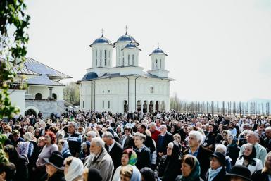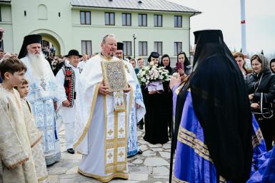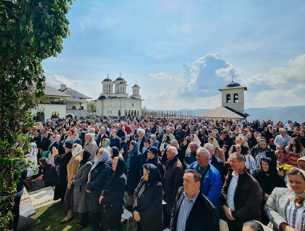 De la ora 10:00, la Altarul de vară al mănăstirii, Înaltpreasfințitul Părinte Andrei a oficiat Sfânta Liturghie, înconjurat de un sobor de clerici, în prezența oficialităților locale și județene, precum și a mii de pelerini, mulți fiind îmbrăcați în straie populare specifice Țării Năsăudului.