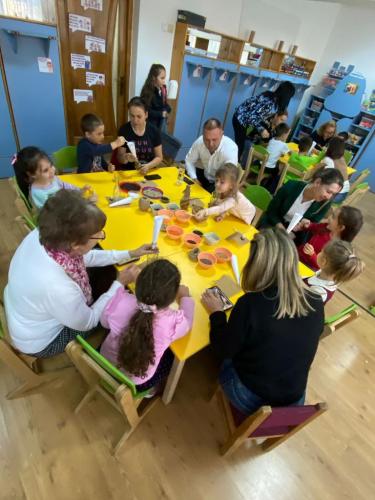 Sub îndrumarea educatoarelor, cei mici și părinții lor au lucrat împreună pentru a da viață Sporului Casei - simbol al prosperității, belșugului și armoniei. Fiecare colțișor al sălilor de grupă s-a umplut de culoare și bucurie, iar creațiile copiilor au transformat activitatea într-o adevărată poveste de toamnă.