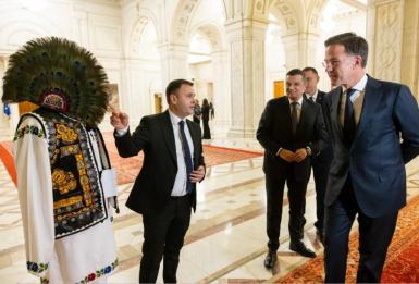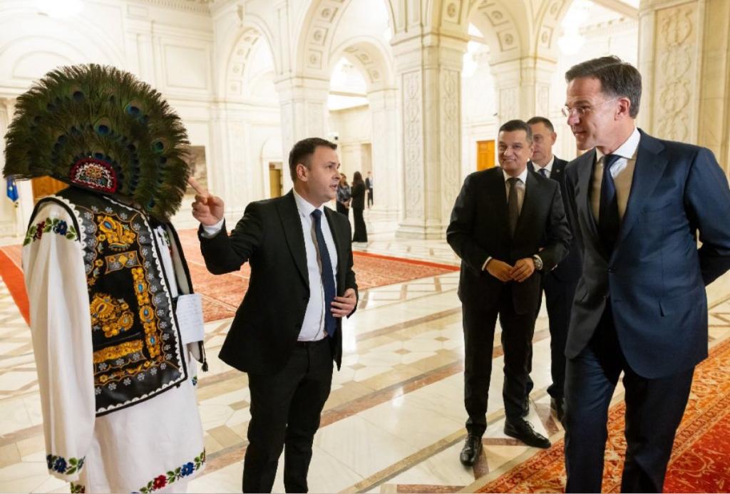 "M-am bucurat să îl reîntâlnesc pe secretarul general al NATO, Mark Rutte, aflat în vizită la București exact când românii au nevoie să știe că suntem o țară protejată. Pe lângă discuțiile despre securitatea țării noastre în acest context special, am fost chiar mândru să-i arăt și să-i explic costumul popular cu pană de păun, unic în lume, evident din Bistrița-Năsăud", a declarat deputatul Daniel Suciu.