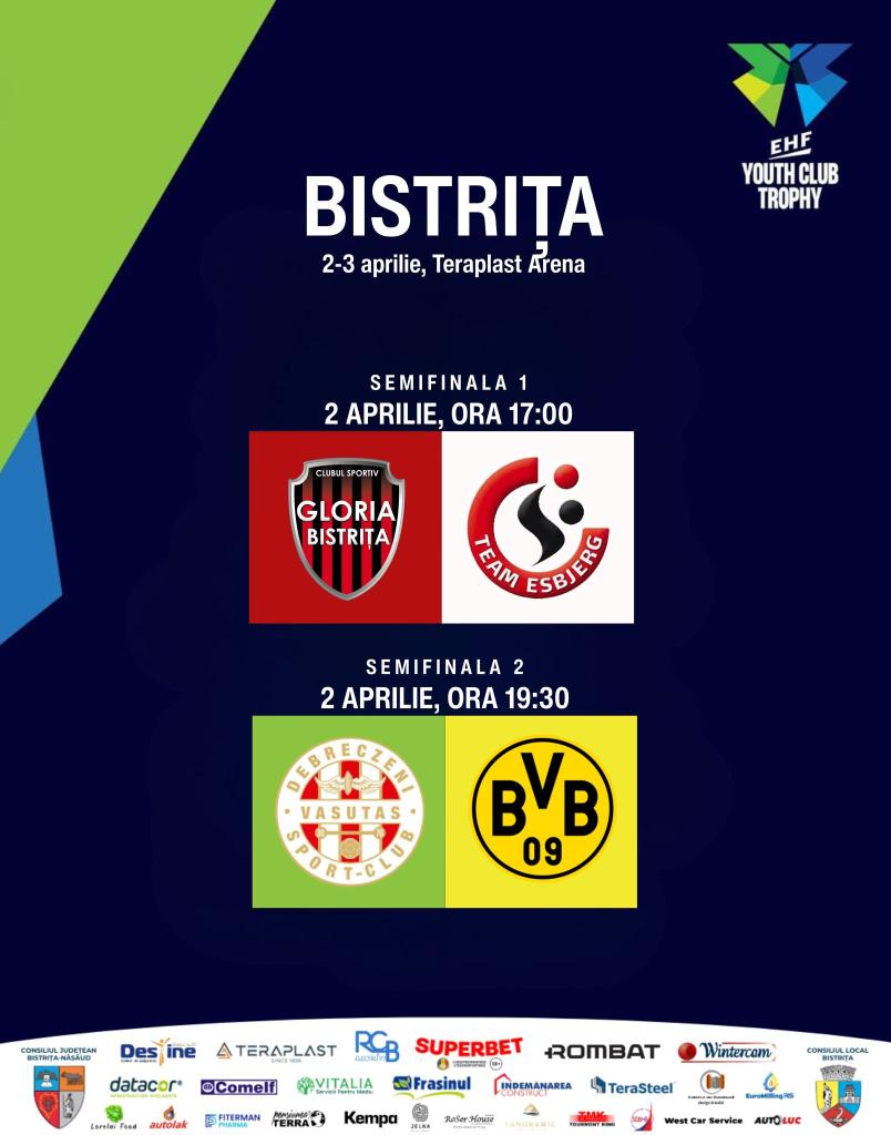Competiția de la Bistrița aduce în orașul nostru pe lângă echipa daneză, adversara noastră din primul meci și formațiile 𝗗𝗩𝗦𝗖 𝗦𝗰𝗵𝗮𝗲𝗳𝗳𝗹𝗲𝗿 (𝗨𝗻𝗴𝗮𝗿𝗶𝗮) și 𝗕𝗩 𝗕𝗼𝗿𝘂𝘀𝘀𝗶𝗮 𝗗𝗼𝗿𝘁𝗺𝘂𝗻𝗱 (𝗚𝗲𝗿𝗺𝗮𝗻𝗶𝗮), care se întâlnesc în cea de-a doua semifinală.