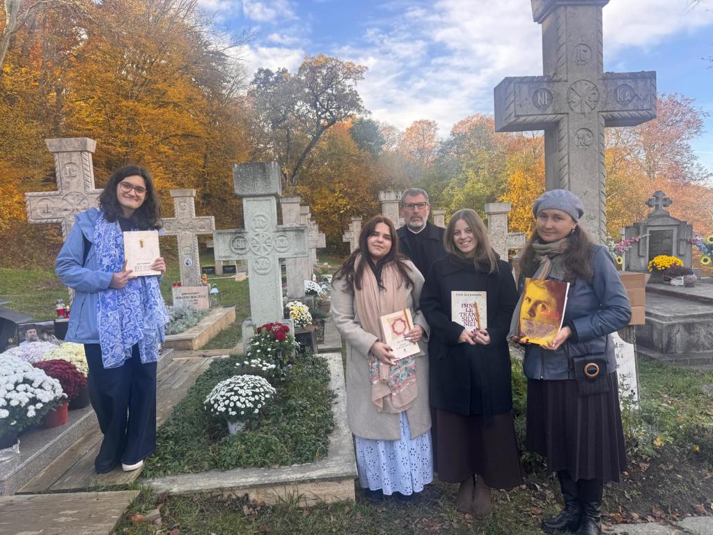 Primul popas a fost la Mănăstirea Nicula, unde, sub oblăduirea Icoanei Făcătoare de Minuni a Maicii Domnului, am asistat la Sfânta Liturghie Arhierească, punând la suflet cuvântul de învățătură al Părintelui Episcop Samuel Bistrițeanul. Părintele Lucian a săvârșit slujba parastasului la mormântul părintelui stareț Nicolae Moldovan, de la a cărui trecere la Domnul se împlinea un an și la mormântul poetului Ioan Alexandru, care a trecut în veșnicie acum 25 de ani. Trei tinere, poete pe cale – Alexandra Deiac, Ana Ciobanu, Cristiana Sigmirean – au citit poeme scrise de poetul omagiat, din volumele „Imnele Transilvaniei”, „Imnele Moldovei” și „Imnele Maramureșului”. Eu am încercat să le pun la suflet „Imnele Iubirii” și modelul de mărturisitor laic al Poetului, prezentând și un număr al revistei „Mișcarea literară”, cu un dosar de autor Ioan Alexandru. De sufletul celor adormiți, am servit, simbolic, în loc de colivă, eugenii și ceai.