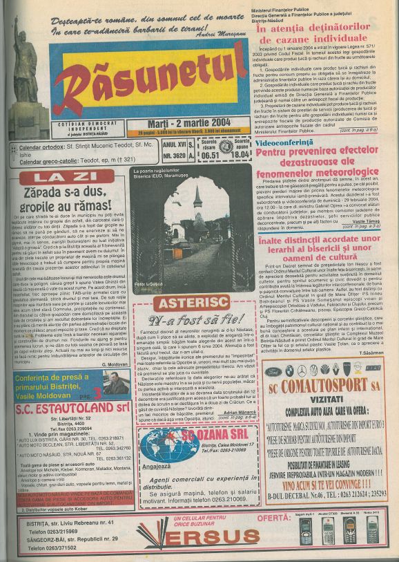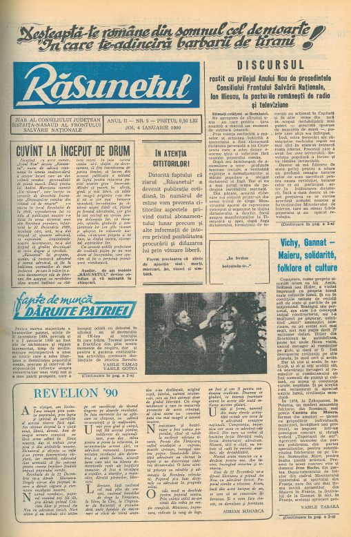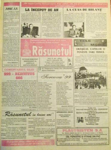 Mă simt legat profesional și deopotrivă sentimental de cotidianul Răsunetul care, iată a ajuns la ediția cu numărul 10 000. Privesc cu bucurie și satisfacție perioada petrecută în colectivul redacțional. Aici mi-am perfecționat viața de ziarist, de la primul număr și până în prezent. Nu poți să te desparți ușor de un ziar, unde ai trudit zi și noapte, Răsunetul, de un colectiv, acum restrâns, dar curajos și profesionist. Îmi amintesc de primul număr ce apărea sâmbătă, 23 decembrie 1989. Ce neliniște ne cuprindea pe toți cu întrebări, provocări, zile și nopți trudnice, cu soldați la ușa tipografiei. Patru numere de Ecoul Nou, iar de joi, 4 ianuarie 1990 devine Răsunetul.