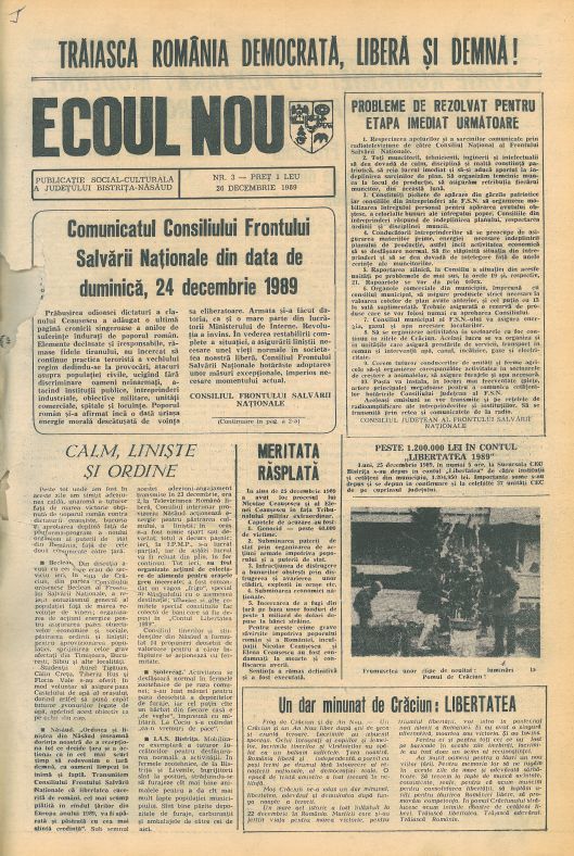 Născut odată cu democrația din țara noastră, ziarul a reușit să transmită mesajul tuturor, să ilustreze realist și uneori critic crâmpeie de viața oamenilor cu bucurii, împliniri, greutăți etc. De-a lungul celor 10 000 de ediții a reușit, prin cei doi ostenitori de acum, Menuț Maximinian și Gabriela Ciornei să se mențină ca cel mai știut ziar al județului, de altfel singurul tipărit, să-și păstreze echidistanța, obiectivitatea și spiritul critic, să devină purtătorul de cuvânt al oamenilor din Bistrița-Năsăud.