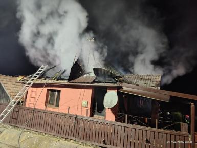 Incendiul a izbucnit din interiorul locuinței și s-a extins rapid la nivelul acoperișului, afectând o suprafață de aproximativ 150–170 mp.