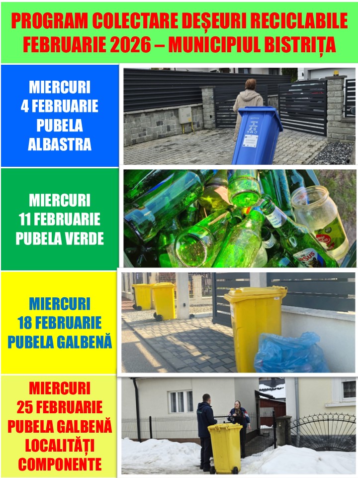 - Atenție! Vezi care este programul de colectare a deșeurilor reciclabile pentru municipiul Bistrița și localitățile componente în luna februarie!
