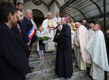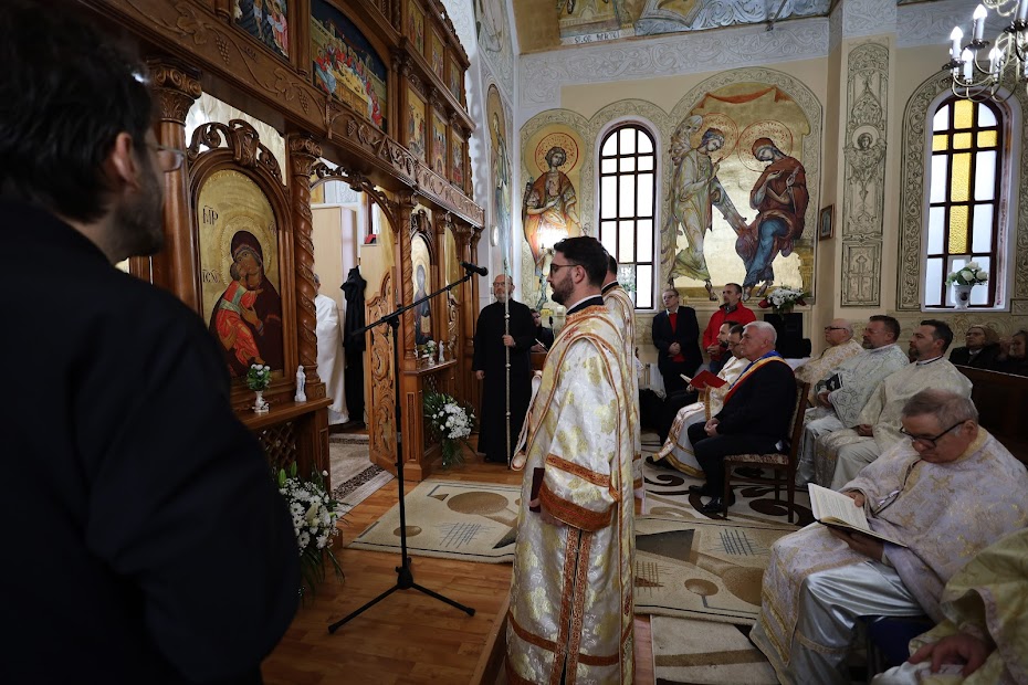 Preasfinția Sa Claudiu s-a oprit și la aniversarea celor 30 de ani de preoție împliniți de pr. paroh Vasile Sabo, și l-a felicitat „pentru toți anii minunați de slujire”. A spus: „Intrând aici, să vă aduceți aminte că fiecare dintre noi suntem o biserică vie a Spiritului Sfânt. Eu îl felicit pe părintele vostru paroh, pe părintele Vasile pentru toți anii minunați de slujire. Atâtea rugăciuni, atâtea Sfinte Liturghii pentru voi, atâtea iertări, atâtea mijlociri. Dar părintele Vasile a simțit exact ceea ce am spus despre acest loc: că a primit un dar și trebuie să îl dea. Că a primit o bogăție și trebuie să o împărtășească. Și aceasta fac preoții în fiecare zi, în fiecare clipă. De aceea este extrem de important să vă rugați pentru ei.”