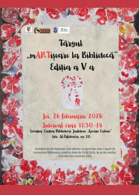 Consiliul Județean Bistrița-Năsăud, Biblioteca Județeană „George Coșbuc" Bistrița-Năsăud organizează, în data de 26 februarie 2026, cea de-a V-a Ediție a Târgului „mARTișoare la Bibliotecă". ...